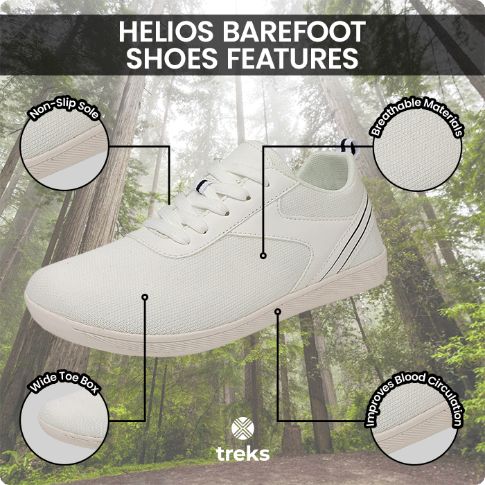 Versatile and Lightweight - Treks-Helios barefoot shoes feature a breathable design that’s perfect for everyday wear. They provide comfort and support, catering to a variety of foot health needs.