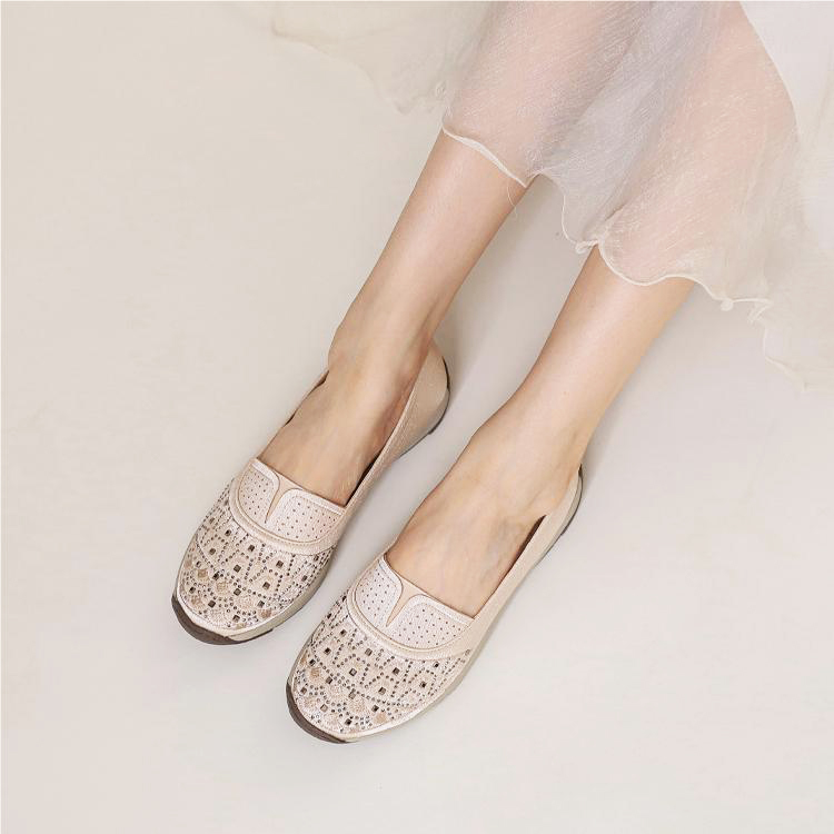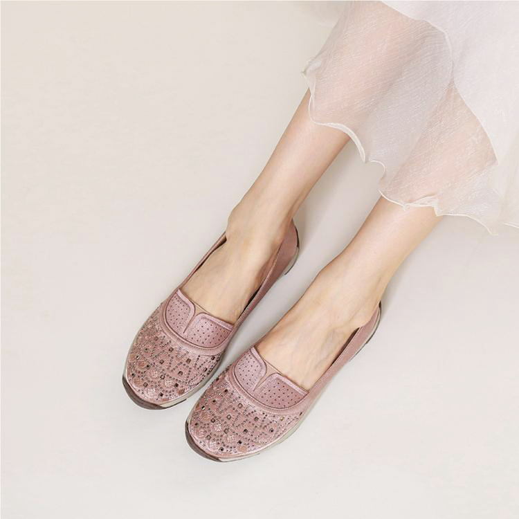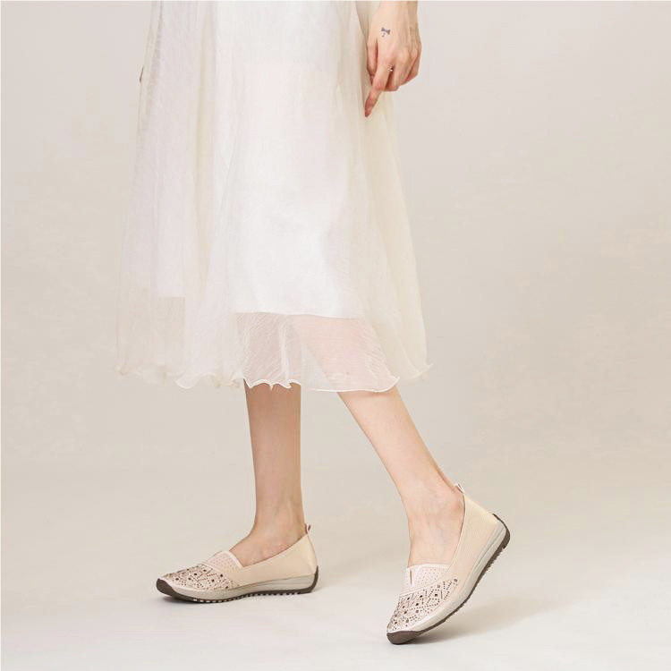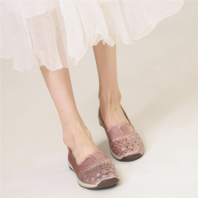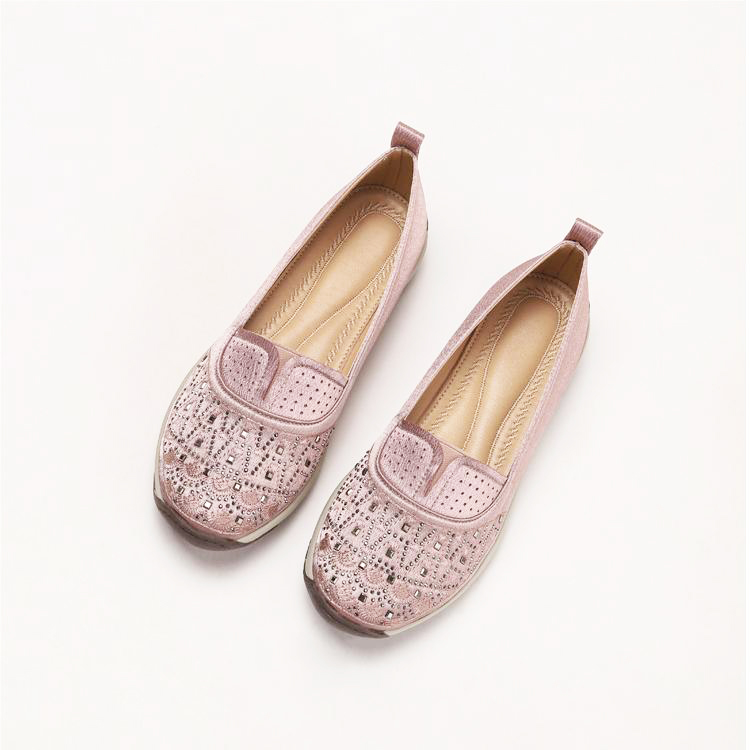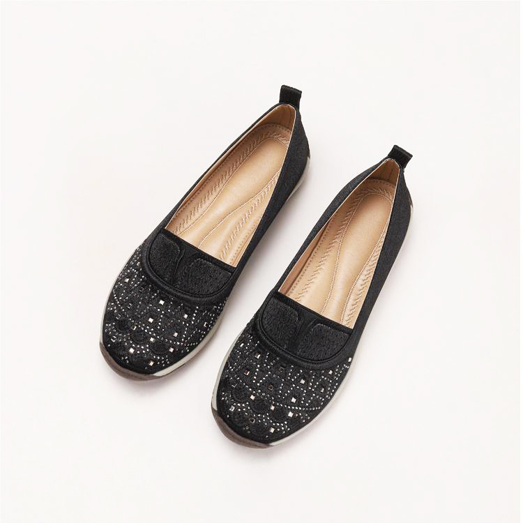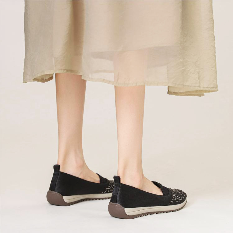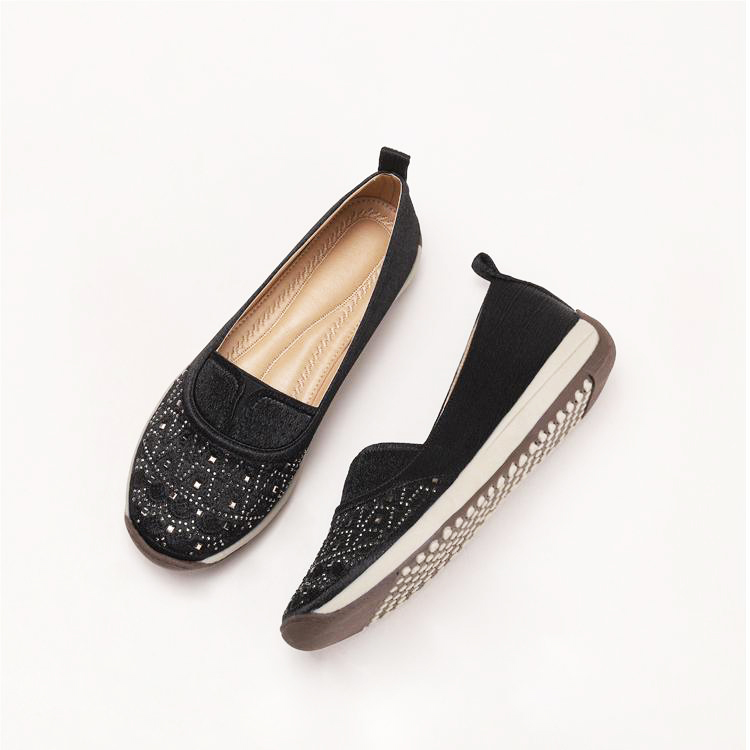 High-quality stretch mesh knitted upper, embellished with sparkling rhinestones, fashionable and breathable.